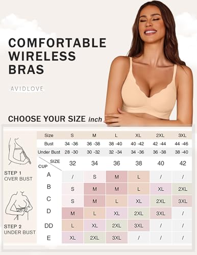 HOT ! Avidlove Bras for Women No Underwire Seamless Push Up Bra Wireless Soft Bralettes Scalloped Full Coverage Everyday Bra