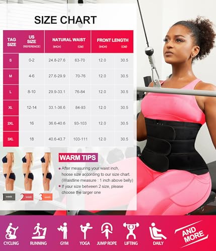 • FUNCTIONAL SWEAT BAND WAIST TRAINER : Waist cincher for lower belly fat made of Latex-Free 100% neoprene 3 layer composite fabric,great for people with sensitive skin,comfortable, stretchy, flexible, durable,fits to your curve,tummy shaper corset move with your body under any action,can matches with your workout bra or wear it under everyday clothes. If you want a feeling of a flat stomach,a small waist,and a tight core,TrainingGirl Trimmer Belt is the first choice in your weight loss journey!
