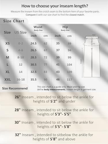 • 28 inches inseam Recommended Height: 5'3"-5'5"; 30 inches inseam Recommended Height: 5'5"-5'8". Please choose the right size according to your height and leg length.