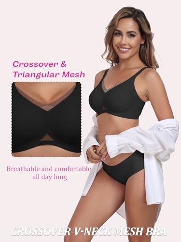 • Crossover Womens Bra - OXYIBRAS wireless bra features a delicate criss-cross and triangle mesh design that integrates breathability and elegance, enhancing comfort and fit like second layer of skin. U-shaped back and crisscross back prevent slippage during yoga, dance, or light exercise, offering a flattering silhouette under any outfit.
