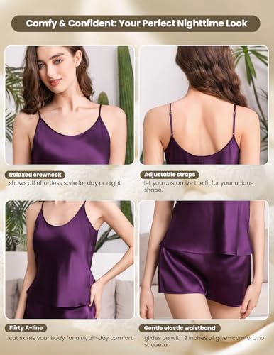 More information about THXSILK 100% Mulberry Silk Women Cami Pajama Set, Tank Top with Shorts Sleepwear, Adjustable Spaghetti Straps, Luxury Pj Set