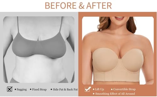 SEA BBOT Women Longline Strapless Bra Full Figure Corset Bra Hide Back Fat 6
