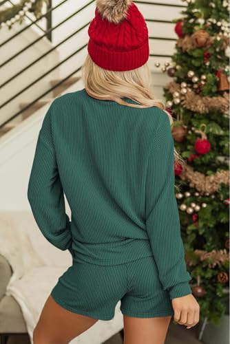 Womens Ribbed Pajama Sets Long Sleeve Top and Shorts Matching Lounge Set Loungewear Sweatsuit with Pockets 6