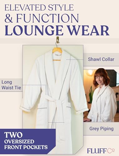 • Luxury Design: FluffCo has recreated the best hotel-quality bathrobe, featuring a fluffy microfiber exterior and soft fleece interior with side pockets, a shawl collar, and a waist tie belt detailed with grey piping.