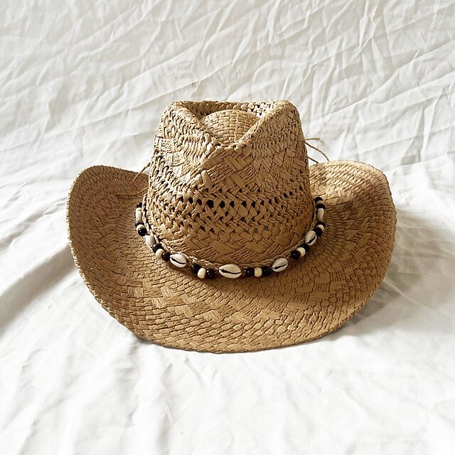 $31.99 - Shell Straw Hat Seaside Holiday Sun Hat Roll Brim Cowboy Straw Hat 2025. Shop for cheap Wild West online? Buy at lightinthebox.com on sale today!