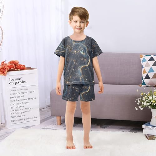 ALAZA Cat Constellation Space Black Pajamas Set Short Sleeve Cotton Sleepwear Summer Pjs 2 Piece 5-14Y 2