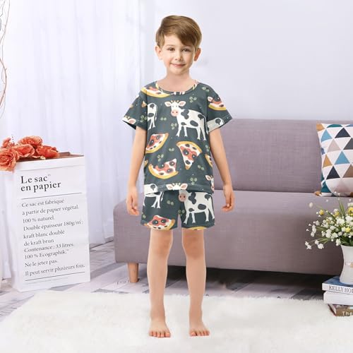 ALAZA Cow Pizza Cartoon Pajamas Short Sleeve 2 Piece Sleepwear Top and Bottom Pajama Set Unisex 6