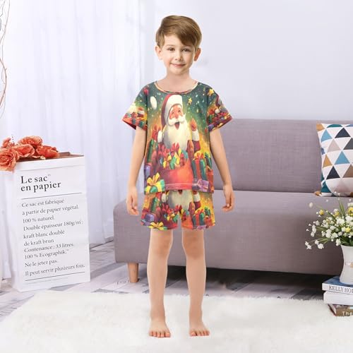 ALAZA Santa Claus Star Colored Merry Christmas Pajamas Set Short Sleeve Cotton Sleepwear Summer Pjs 2 Piece 5-14Y 6