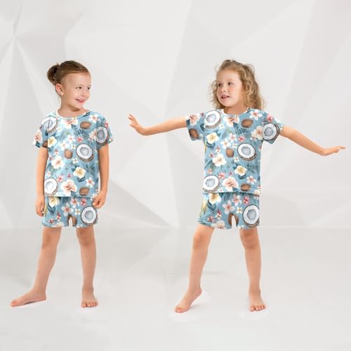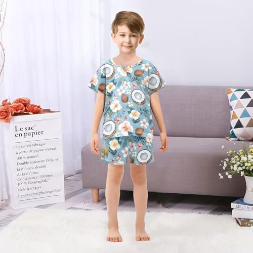 ALAZA Coconut Tropical Flower Palm Leaves Blue Pajamas Short Sleeve 2 Piece Sleepwear Top and Bottom Pajama Set Unisex 6