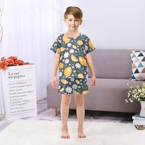 ALAZA Lemon Daisy Lemon Blue Leaves Pajamas Short Sleeve 2 Piece Sleepwear Top and Bottom Pajama Set Unisex 2