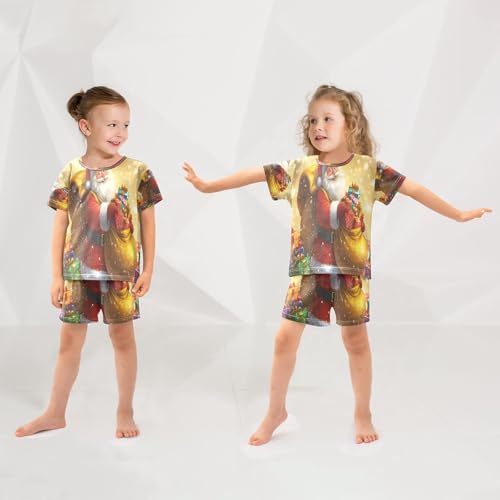 ALAZA Golden Santa Claus Star Merry Christmas Pajamas Set Short Sleeve Cotton Sleepwear Summer Pjs 2 Piece 5-14Y 6