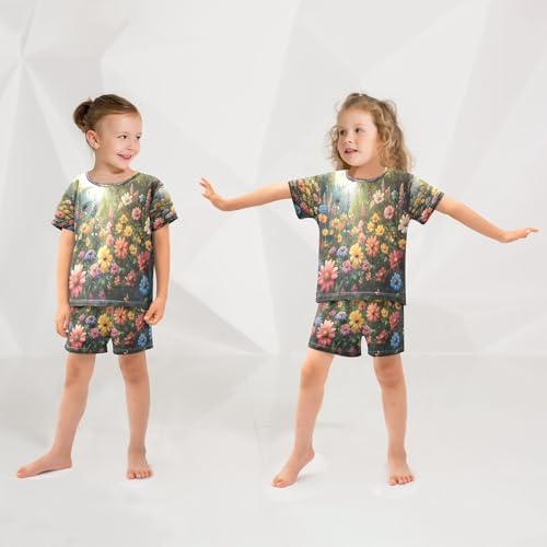 ALAZA Flower Butterfly Landscape Pajamas Set Short Sleeve Cotton Sleepwear Summer Pjs 2 Piece 5-14Y 5
