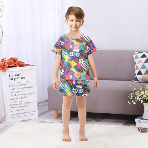 ALAZA Soccer Football Geometics Pajamas Set Short Sleeve Cotton Sleepwear Summer Pjs 2 Piece 5-14Y 6