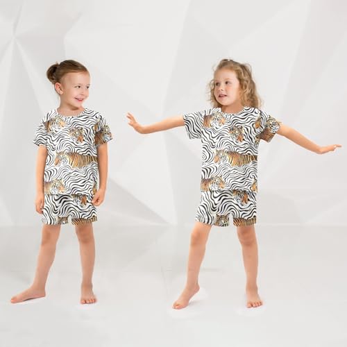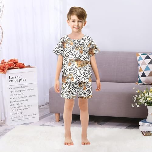 ALAZA Tiger Chevron Striped Pajamas Short Sleeve 2 Piece Sleepwear Top and Bottom Pajama Set Unisex 2