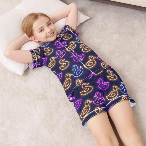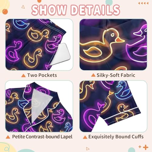 ALAZA Neon Duck Stylish Pajamas Satin Pajama Set Short Sleeve Button Down Sleepwear 3