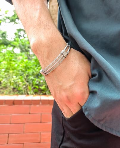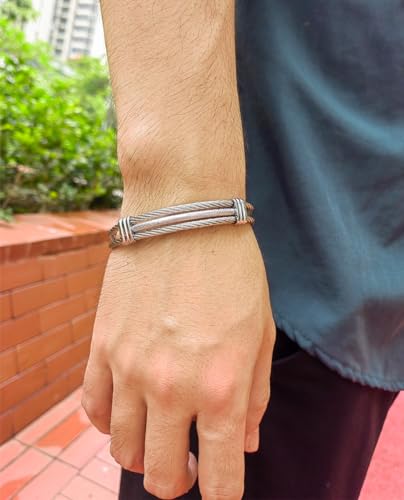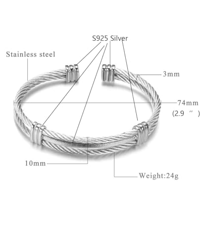 More information about Solid Pure Silver Mens Bracelets | S925 Understated Bracelet | Fine Men's Open Bangle | Men Jewelry Gift (2 Layers Twist)