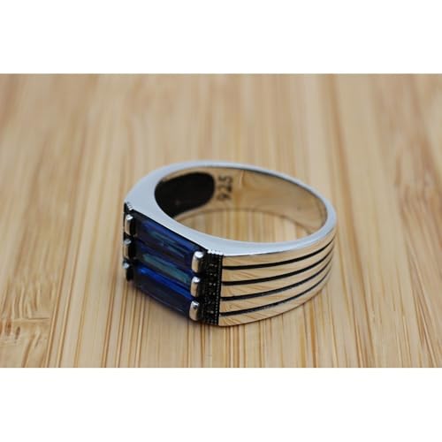 • Ideal Men's Wedding Band — Perfect as a men's sapphire wedding band, engagement ring, promise ring, or daily signature piece. Men's Sterling Silver Sapphire Ring — The perfect combination of strength, luxury, and elegance for men's jewelry collections.