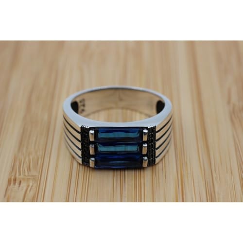 Natural Blue Sapphire Ring 925 Sterling Silver Mens Sapphire Ring Vintage Gemstone Jewelry Gift for Him Signet Rings for Men Wedding Band Mens 3