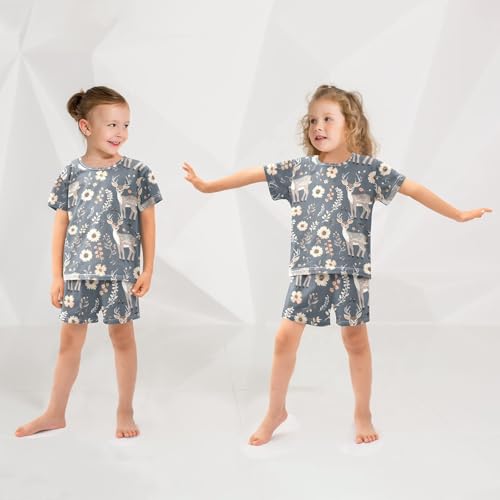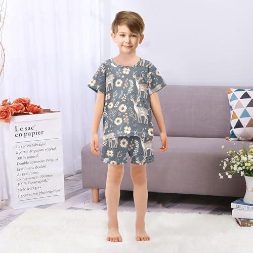 ALAZA Deer Blossom Flower Pajamas Short Sleeve 2 Piece Sleepwear Top and Bottom Pajama Set Unisex 2
