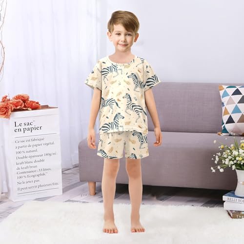 ALAZA Zebra Palm Leaf Pajamas Short Sleeve 2 Piece Sleepwear Top and Bottom Pajama Set Unisex 2
