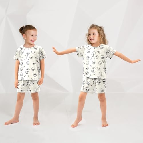 ALAZA Skeleton Sugar Skull Cartoon Style Pajamas Short Sleeve 2 Piece Sleepwear Top and Bottom Pajama Set Unisex 2