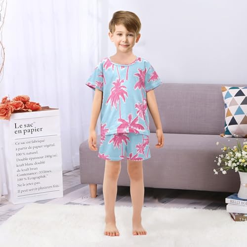 senya Short Sleeve Pajamas Sets Summer Cotton Sleepwear Pink Plam Tree Blue Background 1