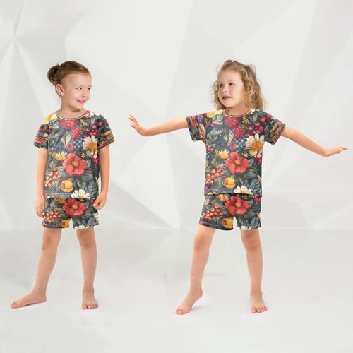 senya Short Sleeve Pajamas Sets Summer Cotton Sleepwear Rosehip Fruits Tea Leaves 1