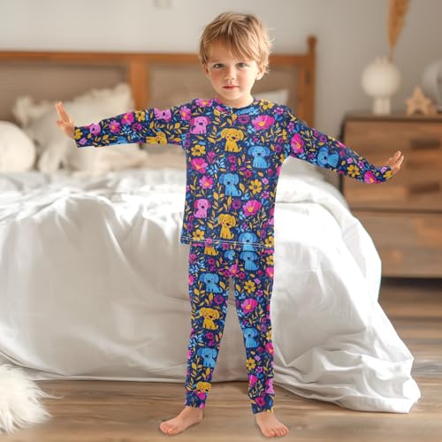 Cute Dogs and Flowers Pattern Cute Pajama Sets Long Sleeve Top and Pants, Snug Fit Sleepwear for Night Wears 1