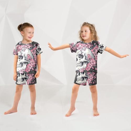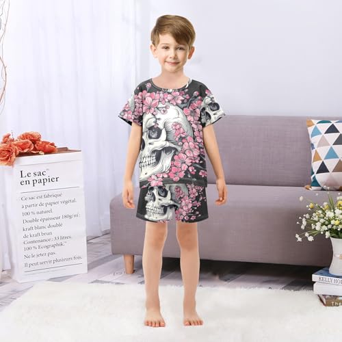 ALAZA Skull and Cherry Flowers Pajama Set Short Sleeve Sleepwear Soft Lounge Nightwear 5