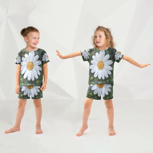 senya Short Sleeve Pajamas Sets Summer Cotton Sleepwear Beautiful White Daisy 2