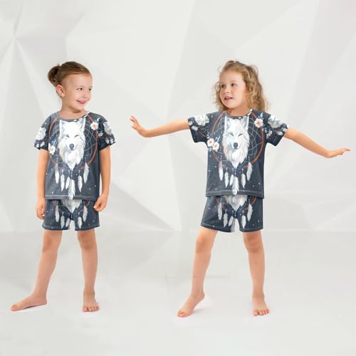 senya Short Sleeve Pajamas Sets Summer Cotton Sleepwear White Feather Dreamcatcher Wolf 3