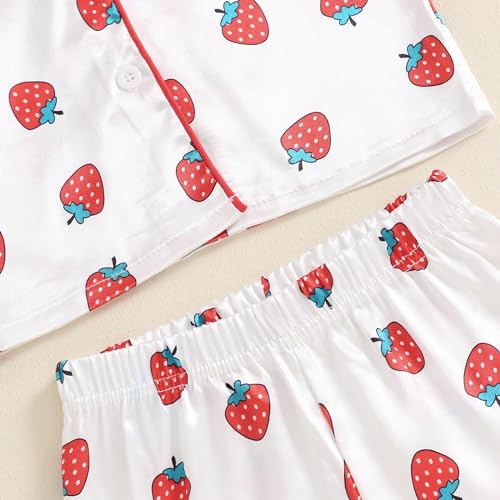 Toddler Girl Floral Pajamas Set Short Sleeve Button Down Shirt And Shorts 2Pcs Kids Pjs Loungewear 3