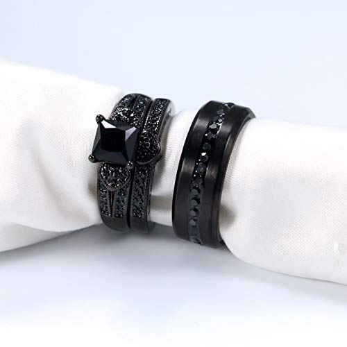 • WOMEN'S RING: Heart design.Black Ring Black CZ wedding Ring 2pcs engagement ring sets.Every zircon is inlaid and won't fall off.Womens Sizes AVAILABLE: 6 7 8 9
