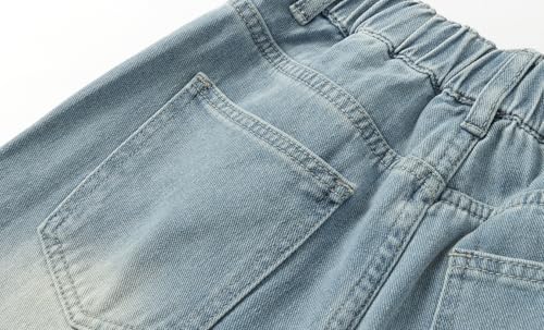 LittleSpring Unisex Boys Girls Ripped Jeans Wide Leg Denim Pants Loose Fit 6-18 Years 7