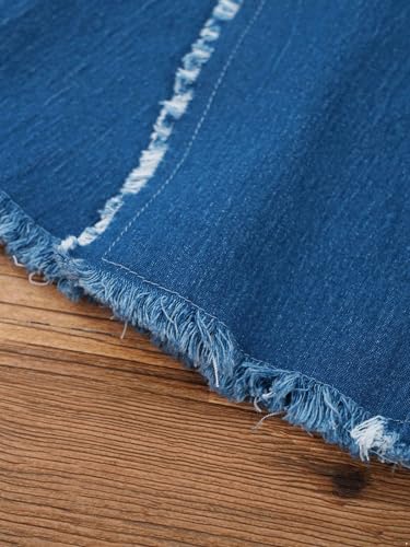 JEYPINMI Big Girl's Ripped Raw Hem Flare Bell Bottom Jeans High Waisted Denim Pants Casual Bootcut 6