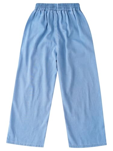 Aislor Kids Girls Star Patches Elastic Waist Casual Wide Leg Denim Jeans Pants Washed Vintage Trousers with Pockets 7