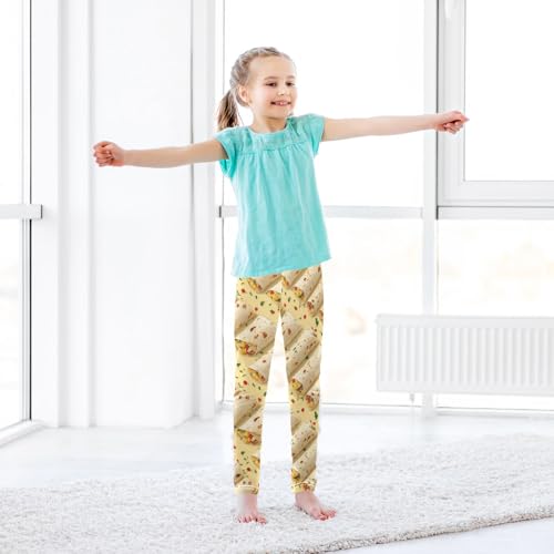 Maxican Taco Food Burritos Tortilla Girls Casual Leggings for Kids Printed Long Pant Bottoms Stretch and Soft 4