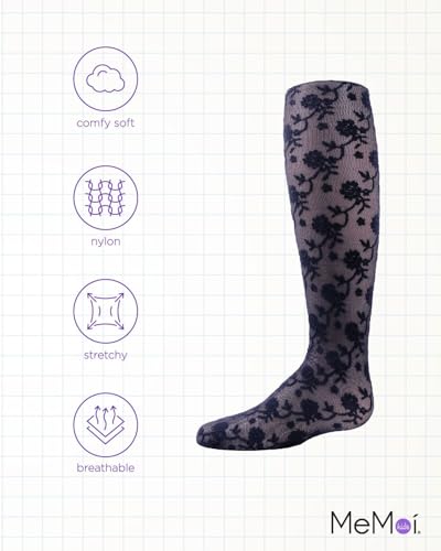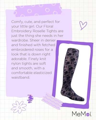 HOT ! MeMoi Girls' Floral Embroidery Roselle Sheer Tights