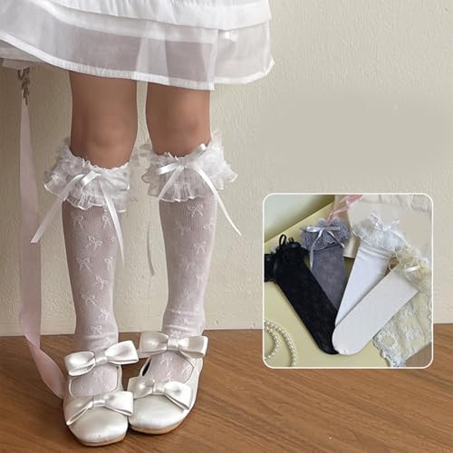 HOT ! Soft & Breathable Middle Calf Socks Girls Socks for Kids with Bowknot Design for Everyday Wear and Special Occasion