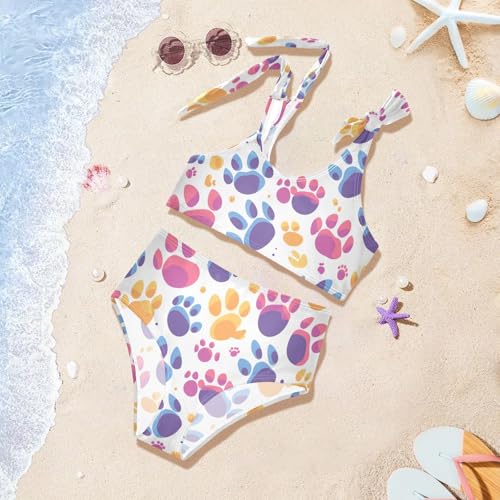 Cute Paws Print Colorful Girls' 2 Piece Kids Bikini Set Scoop Neck Swimsuit Swimwear Adjustable Strap 4