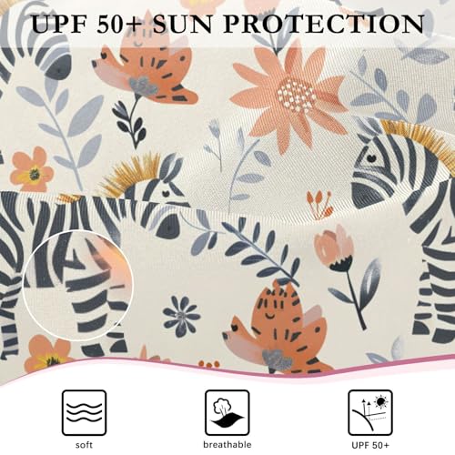 Cute Hand Drawn Zebras and Flowers Girls Long Sleeve Swimsuit Rash Guard One Piece Bathing Suits Zipper 3-12T 7