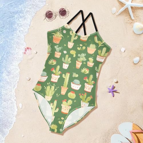 Sprouting Cacti Spring Green Toddler Girl Swimsuit 1-Piecing Bathing Suit Toddler Swim Suits for Girls Swimwear 3T 4