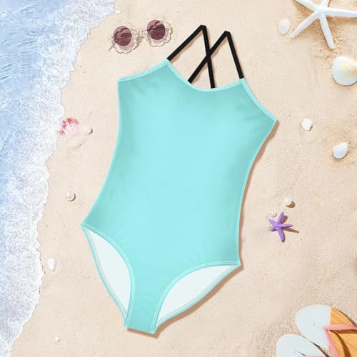 Light Blue Teal Girls Bathing Suit Swimsuit One Piece Swimsuits Summer Beach Swimwear 6