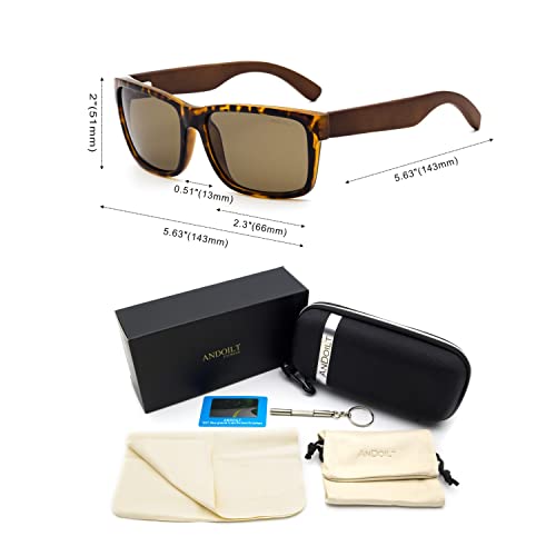 ANDOILT Wood Polarized Sunglasses for Men Women Trendy Vintage Retro Fashion Square Wooden Bamboo Frame Sun Glasses 5