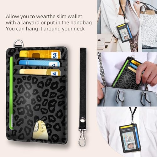 HOT ! Slim Wallet for RFID Blocking Wallet, Slim and Stylish Wallet with Multiple Card Slots and Business Card Holder, Credit Card Protector Sleeves, Black Leopard Print
