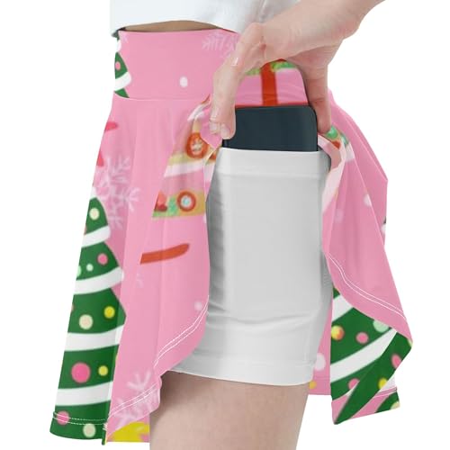 Joisal Christmas Trees Pink Athletic Shorts Girls Skorts Kids Tennis Skirts Cartoon Flowy Skort 3t 5