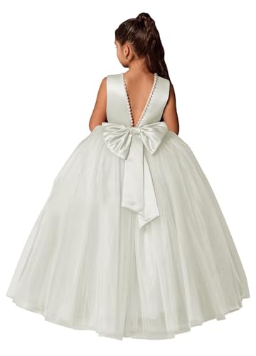 More information about Pearls Flower Girls Dresses Princess Pageant Dress Bow-Knot Kids Satin Tulle Prom Ball Gowns for Wedding DK005