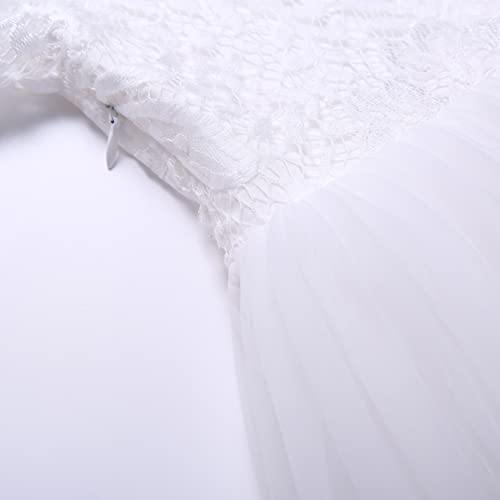 Pettigirl Girls 7 Sashes in 1 White Flower Lace Tulle Tutu Toddler Kid Wedding Party First Communion Bridesmaid Dresses 6