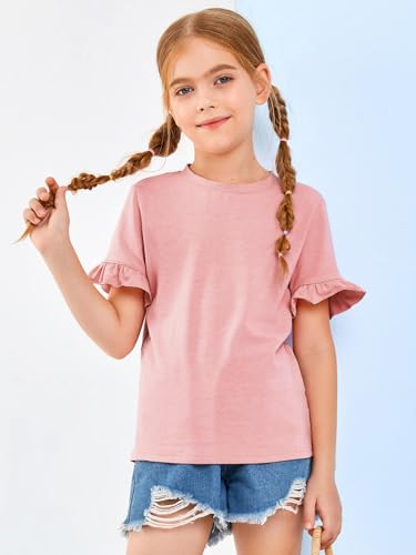 Haloumoing Girls Ruffle Short Sleeve T Shirts Crewneck Plain Casual Summer Tops Blouse Tees 5-14 Years 5