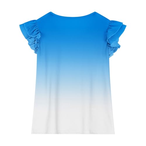 Girls Ruffle Flutter Sleeve T-Shirts Cute Gradient Summer Tops Loose Crewneck Casual Tees for Kids 3-15 Years 7